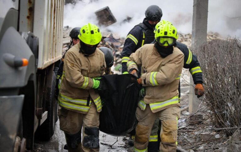 В ДСНС Харківщини повідомили, що нині тривають пошуково-рятувальні роботи на місці ворожого ракетного удару, вилучено тіла трьох загиблих людей